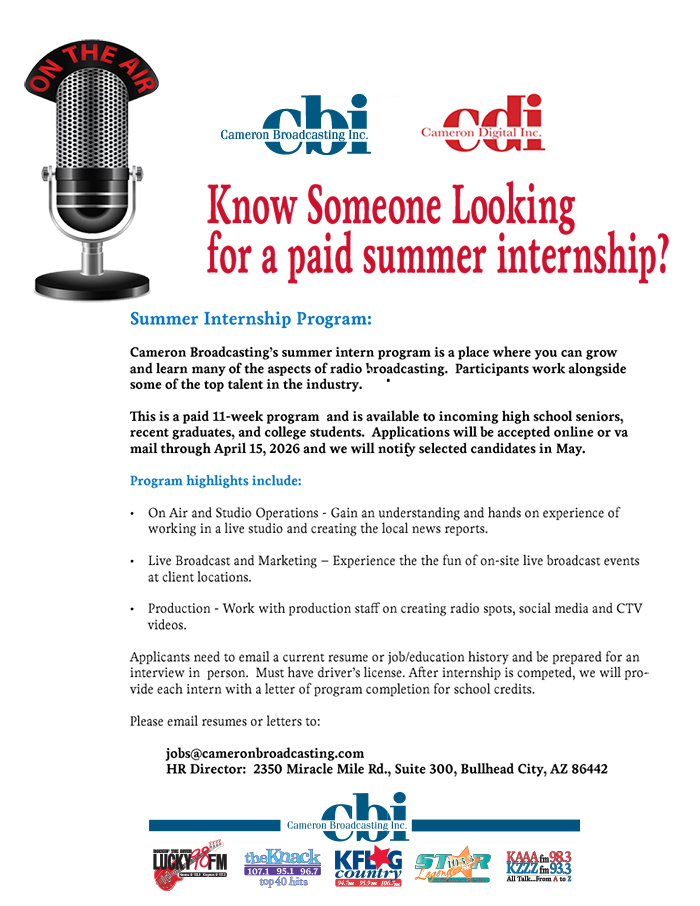 CAMERON BROADCASTING IS AN EQUAL OPPORTUNITY EMPLOYER